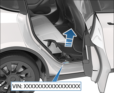 Auto's geproduceerd in Gigafactory Shanghai: Het VIN is in de bodem is ingeslagen en is zichtbaar wanneer de passagiersstoel voorin naar achteren wordt gezet en de vloermat wordt opgetild.